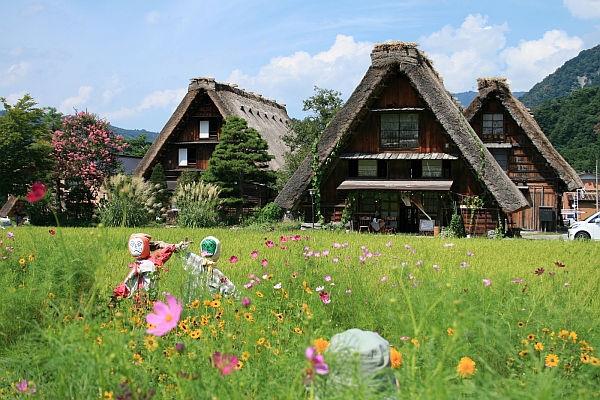 Shirakawa-go và Gokayama nổi tiếng với những ngôi nhà nông dân gassho-zukuri truyền thống, một số ngôi nhà trong số đó có lịch sử trên 250 năm. Gassho-zukuri trong tiếng Nhật nghĩa là "được xây dựng như hai bàn tay đang cầu nguyện". Những mái nhà lợp rạ dốc đứng giống như hình dáng bàn tay các thầy tu chắp lại để khấn Phật. Phong cách kiến trúc này được phát triển qua nhiều thế hệ và được thiết kế để ngôi nhà có thể trụ vững dưới khối lượng tuyết rơi dày đặc vào mùa đông ở vùng này. Mái nhà không cần đinh đóng tạo ra một không gian gác mái rộng để người dân cất trữ nông sản.